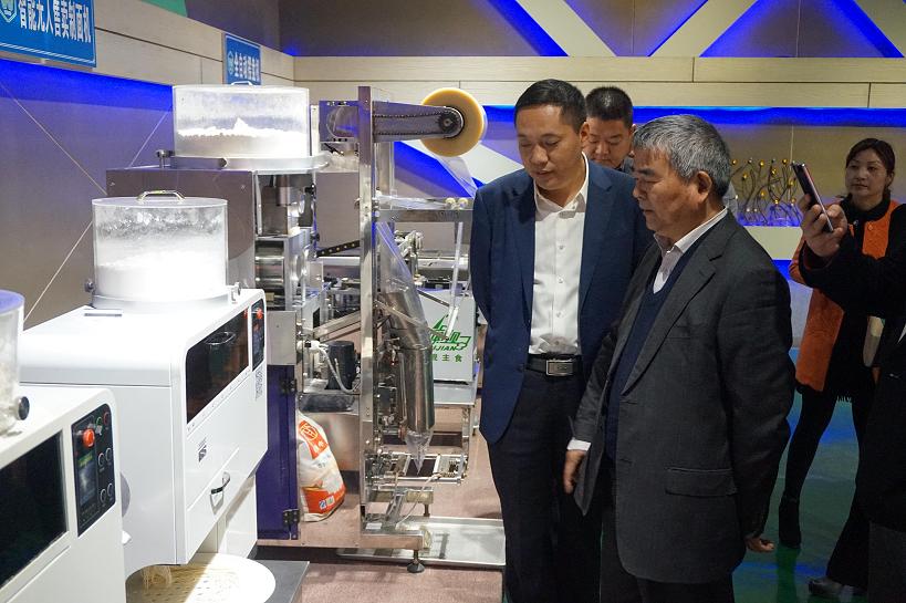 董事長王曉杰與譚建榮講解智能制面機